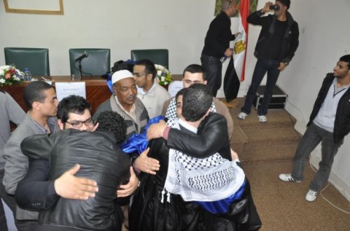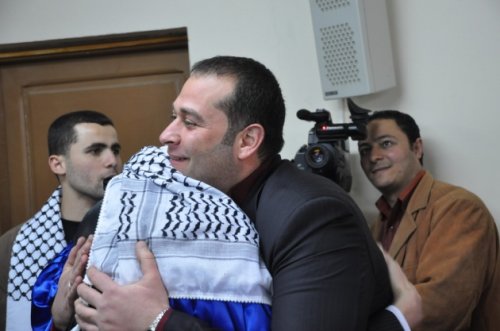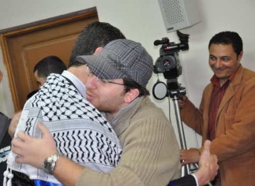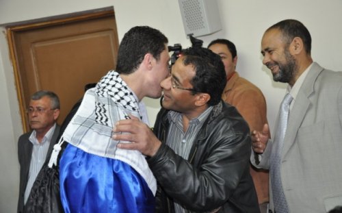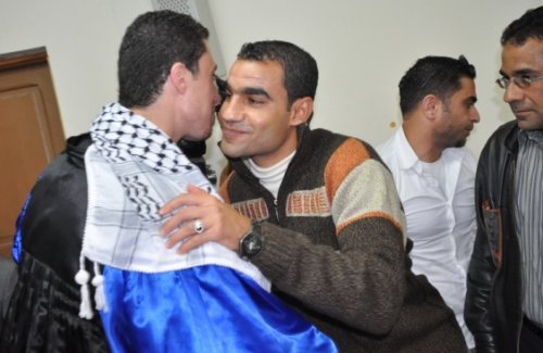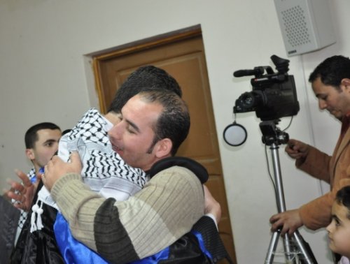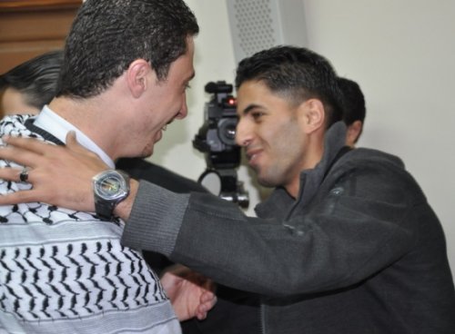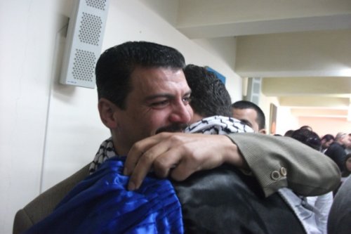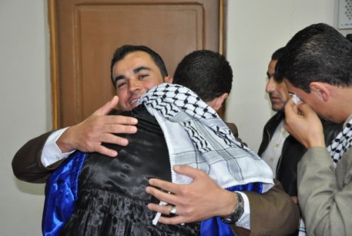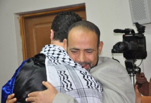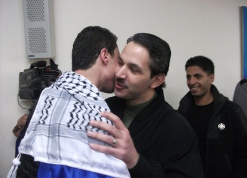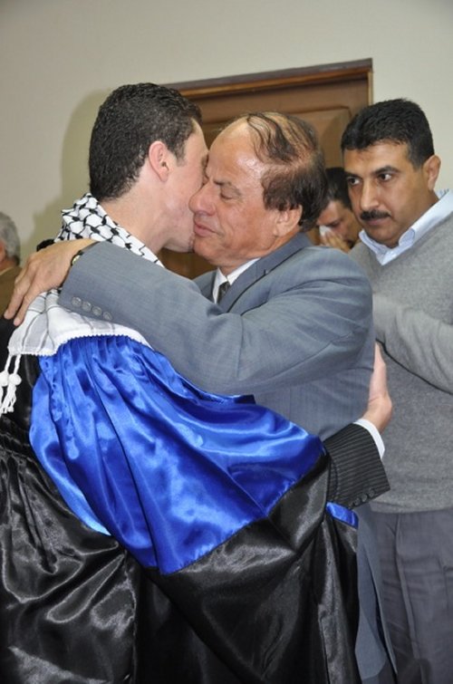 الحاج أبو نهاد مصطفى الأغا في لحظات من العناق
