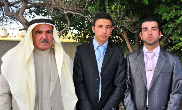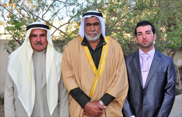 السادة: الشيخ عبدالله الأغا، د. معتز أحمد الأغا(خال العريس) ونجله أحمد