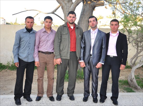 السادة: عماد خليل الأغا، العريس، يوسف أحمد الأغا، محمد(أخ العريس)، أحمد يوسف الأغا،