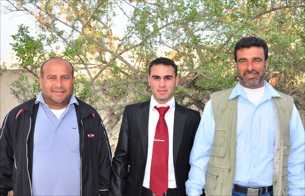 السادة: د. فرج محمد الأغا، زياد جبارة الأغا، محمد إبراهيم الأغا(زوج عمة العروس)،