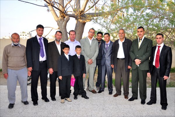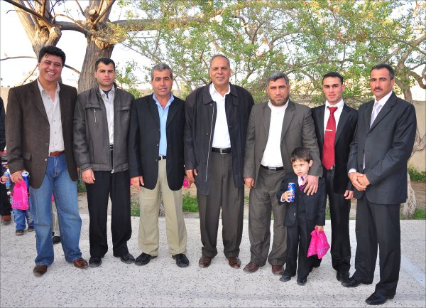السادة: الفرا، محمد حسن السقا، باسم جابر الأغا، أ. أحمد يونس الأغا، جهاد(شقيق العروس)