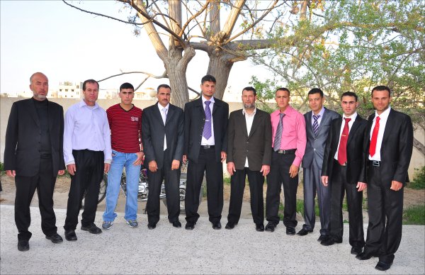 السادة: محمد إبراهيم الأغا، جهاد(شقيق العروس)، أ. محسن أبومسامح، أ. أحمد نصر(خال العريس)،