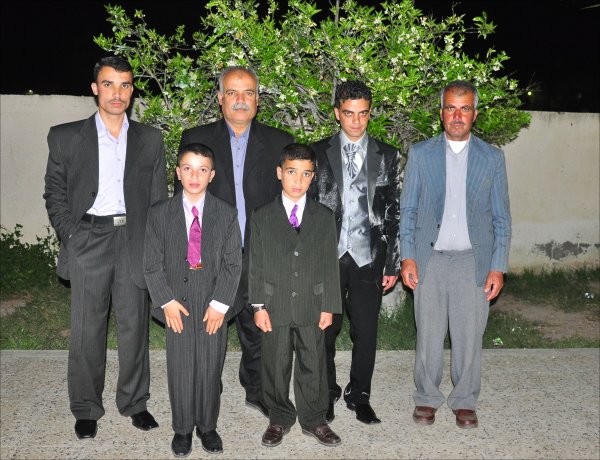 السادة: أيمن(عم العريس)، والد العريس، العريس، والد العروس، باسم علي الأغا،