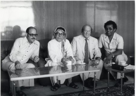 خلال صيف عام ١٩٧٩ زار ليننتال قطر ، ووضع ضمن برنامجه زيارة مجلة الدوحة ، ويبدو في الصورة من اليمين : الدكتور محمد إبراهيم الشوش رئيس تحرير المجلة ، وإلى جانبه الفريد ليننتال ، وإلى يمينه أستاذنا الدكتور درويش مصطفى الفار مدير متحف قطرالوطني سابقا ، يليه سكرتير تحرير المجلة نبيل خالد الأغا ، هذا . . وقد أجرى الفار والأغا لقاء صحفياً مشتركاً مع الضيف البريطاني ونشر في أحد أعداد المجلة.