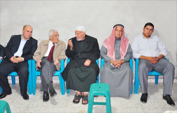 السادة: د. فرج محمد الأغا، الحاج جبارة الأغا، توفيق جبارة الأغا، سامي أحمد عودة الأغا،