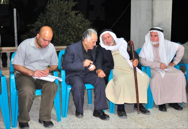 السادة: الحاج جبارة الأغا، الحاج نايف حمدان الأغا، أ. محمد نايف الأغا، يونس خميس الأغا