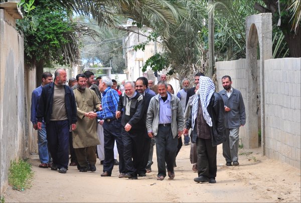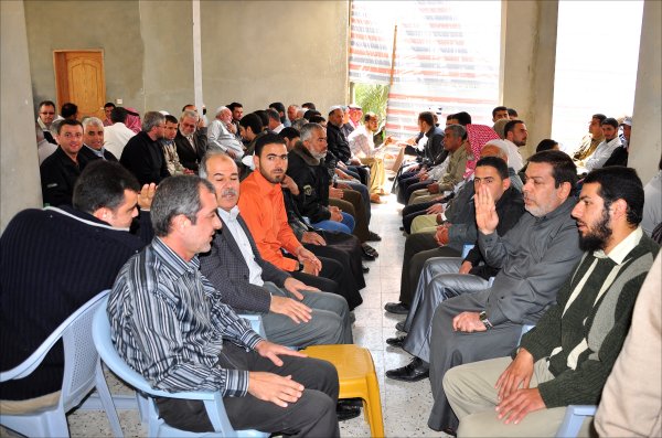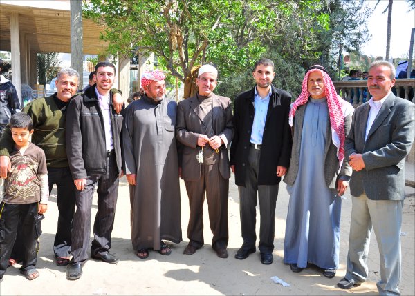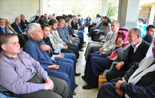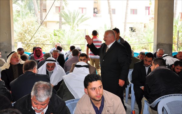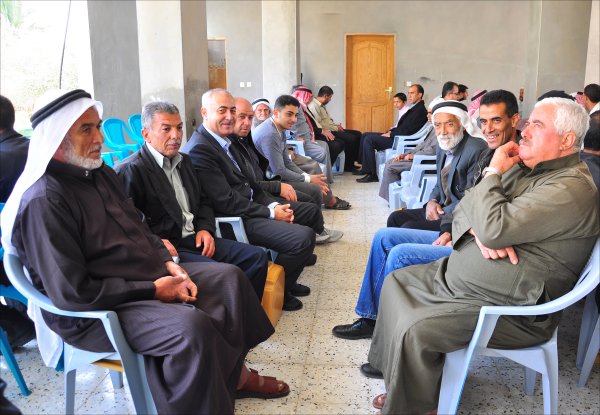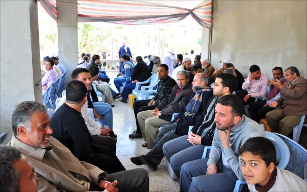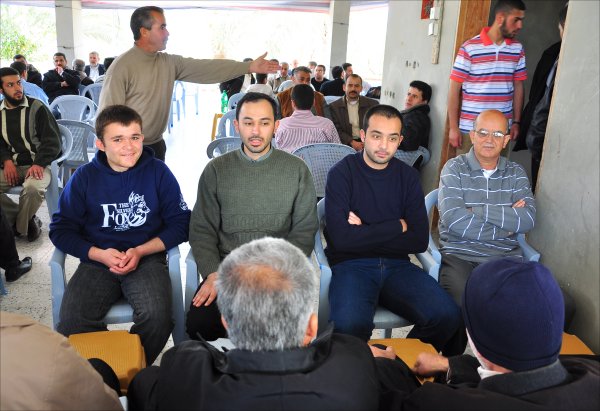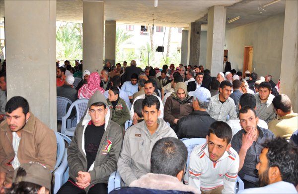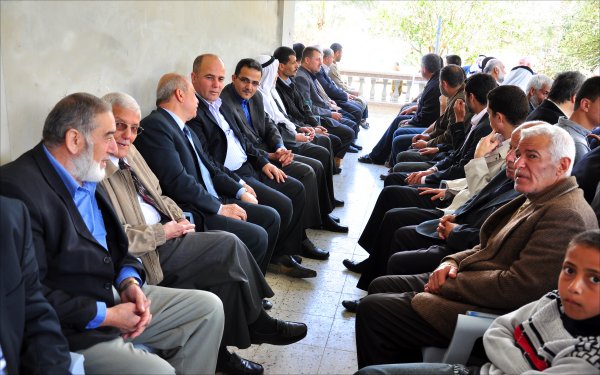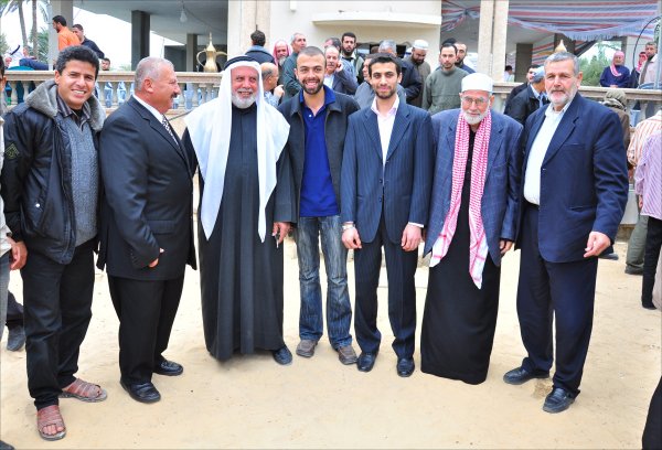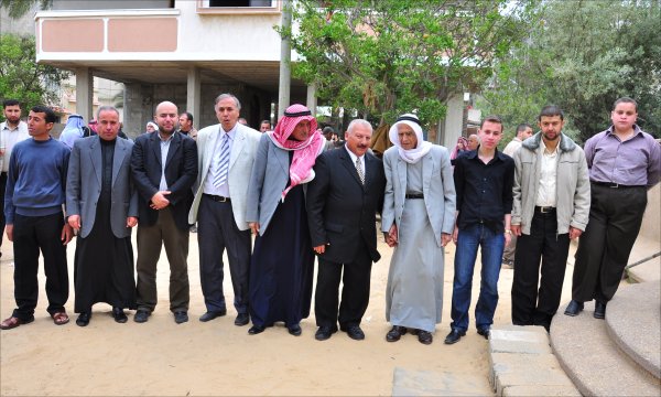 أثناء قدوم الضيوف: أ. أحمد محمود الأغا، الشيخ عبدالله الأغا، أ. عبدالهادي سعيد الأغا،