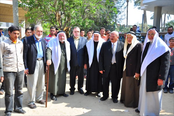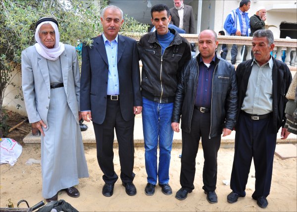 السادة: عبدالمنعم عبدالجواد الأغا، محمد فضل الأغا، أ. خميس يونس الأغا ووالده يونس،