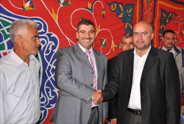 من داخل خيمة الضيافة: الحاج معتصم خليل الأغا، د. زهير صدقي الأغا،