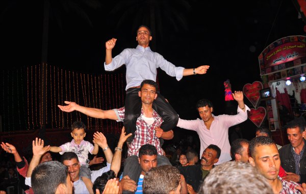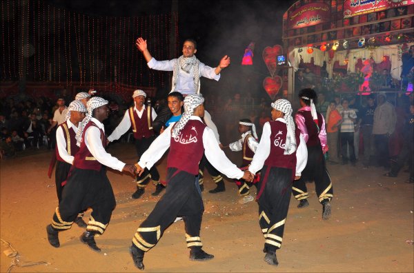 أثناء مرور موكب الزفة في شارع الشيخ ناصر- بجوار الصليب الأحمر