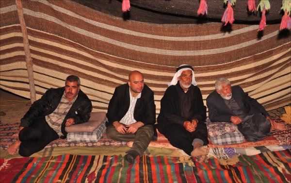 من داخل خيمة الضيافة: الحاج توفيق محمد الأغا، الحاج ماهر نايف الأغا،