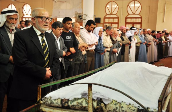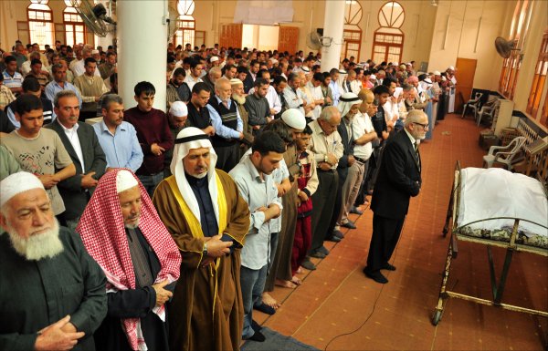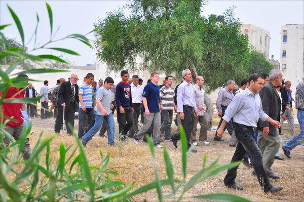 أثناء خروج موكب الجنازة من المسجد الكبير- خان يونس