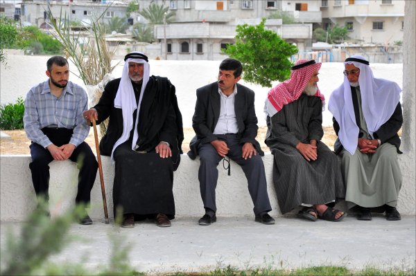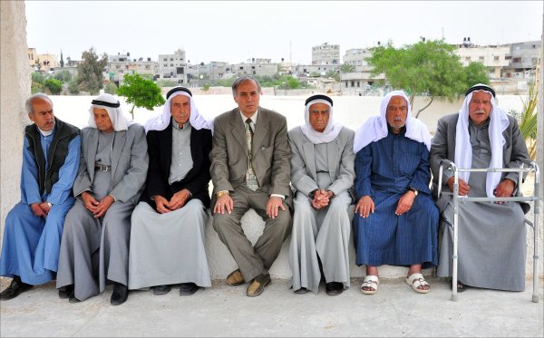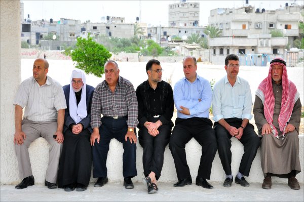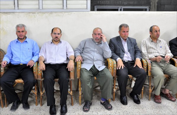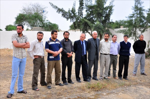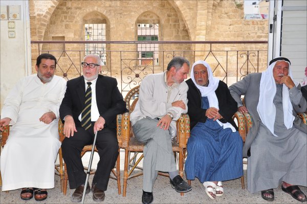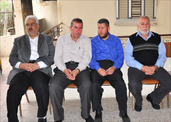 السادة: أ. بيان سليم الأغا، يحيى النجار، الشيخ محمد عبدالمعطي الأغا، الحاج أبوسامر النجار، الحاج إبراهيم النجار