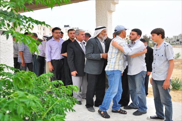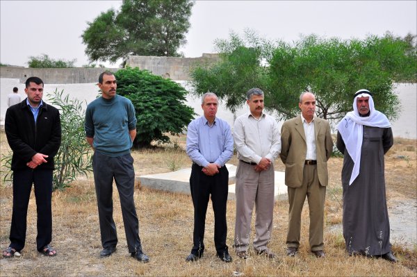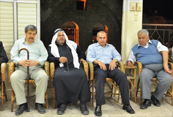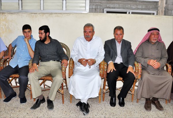 السادة: أ. علي يوسف الأغا، د. وجيه صقر الأغا(زوج كريمة الفقيدة)، الحاج فتحي(زو ج الفقيدة)،