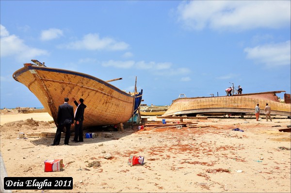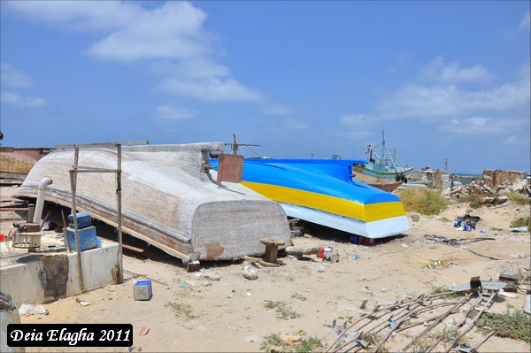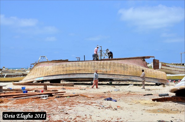 أثناء المشاركة في دهان وطلاء مراكب الصيد