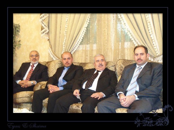 الأستاذ أيمن تيسير(شقيق العريس)، المهندس إياس تيسير(العريس)، د. إسماعيل وصفي،