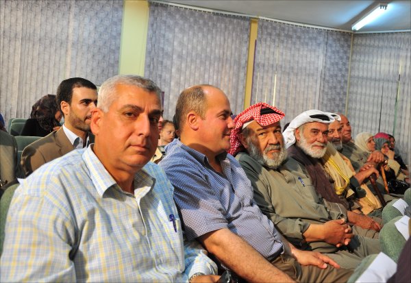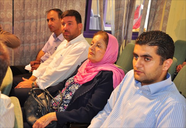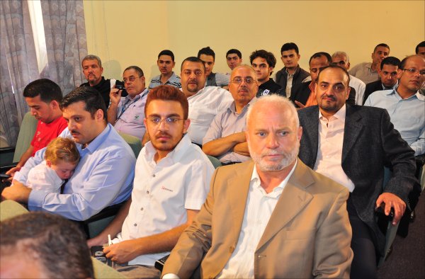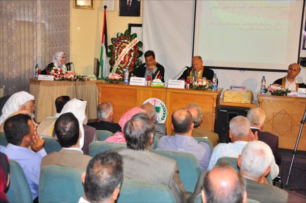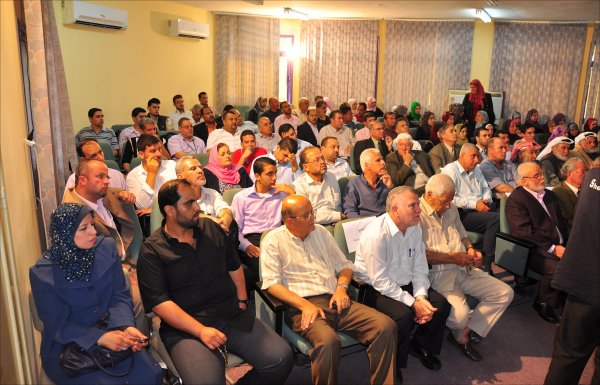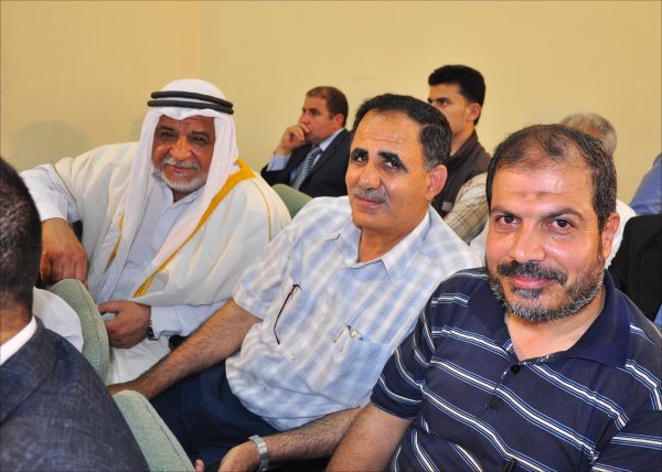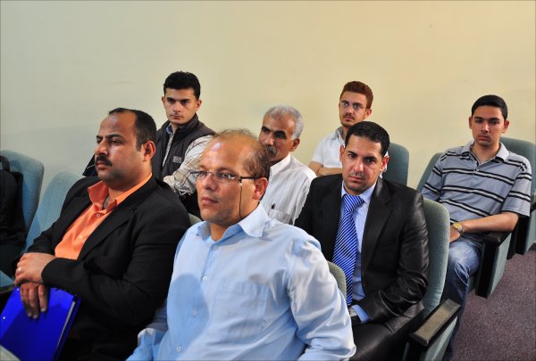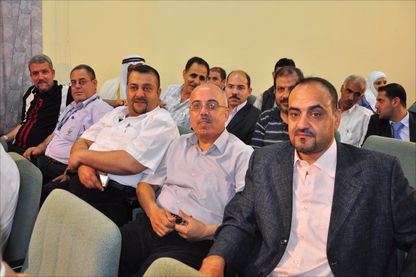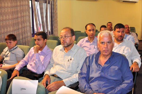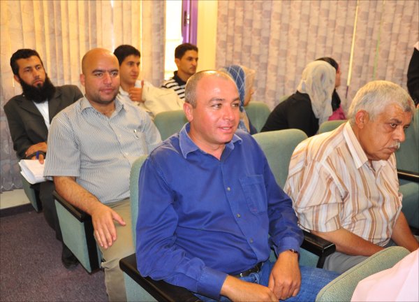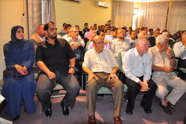 السادة: د. عبدالكريم لبد، أ. عصام حلس، الباحثة ، من الضيوف، أ. د. صلاح الدين أبو ناهية،