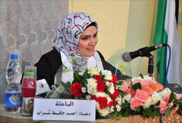 قاعة المؤتمرات- جامعة الأزهر- غزة- الأحد الموافق 29-05-2011 حصلت الأستاذة دعاء أحمد حافظ شراب حرم د. خليل مروان الأغا على رسالة ماجستير بعنوان