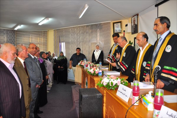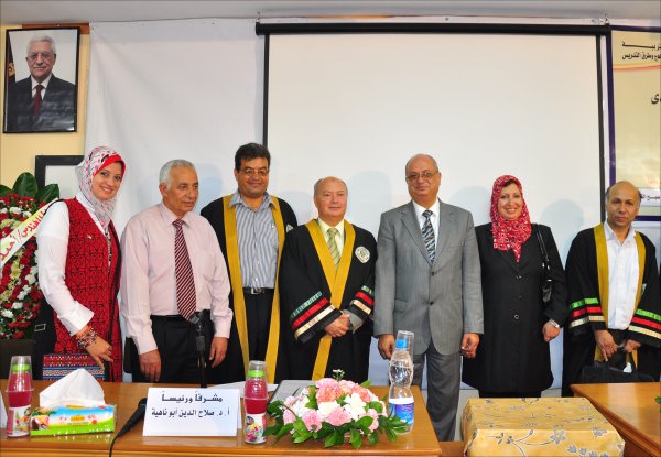 السادة: أ.د خليل حماد، د. مروان سليم الأغا، د. صهيب كمال الأغا، مستشار رضوان محمد الأغا،