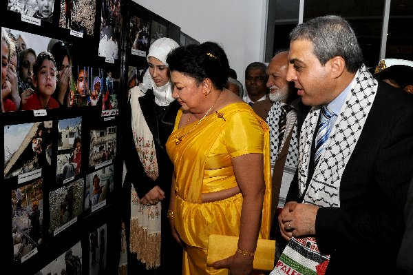 سيدة سريلانكا الأولى و السفير أنور الأغا و حرمه أثناء إفتتاح معرض الصور