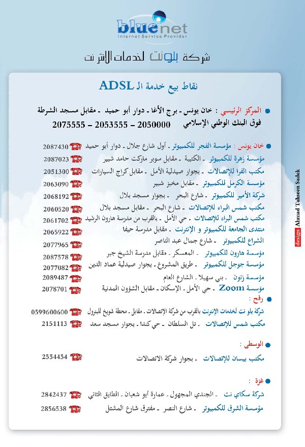 الرئيسة/إعلانات /4 شهور ADSL مجاناً وميزات أخرى(سوا... يلا نركب ADSL) مع بلونت لخدمات الإنترنت إعلانات 4 شهور ADSL مجاناً وميزات أخرى(سوا... يلا نركب ADSL) مع بلونت لخدمات الإنترنت تاريخ النشر : الأحد | 05-06-2011 | 07:27 8294 للإستماع لأغنية بلو نت يرجى الضغط هنا اضغط هنا للتواصل أو التعرف على المهندس أحمد وديع أحمد الأغا يمكنك تلقي أحدث الأخبار أول بأول بانضمامك لإحدى مجموعات الواتساب الخاصة بالعائلة من خلال الضغط هنـا اظهر المزيد