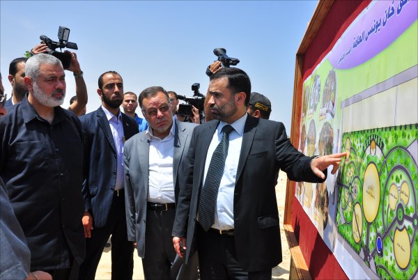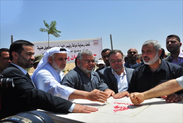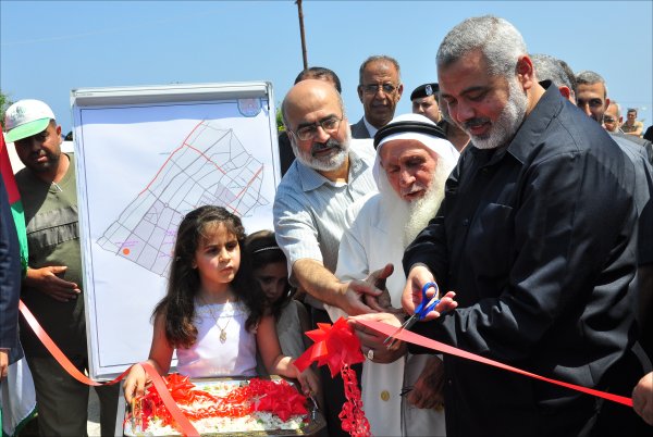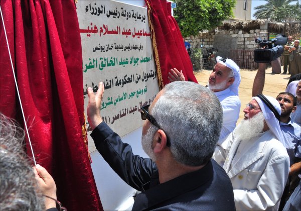 رئيس الوزراء إسماعيل هنية، وزير الأشغال يوسف المنسي، رئيس البلدية أ. محمد الفرا، الوزير زياد الظاظا