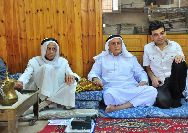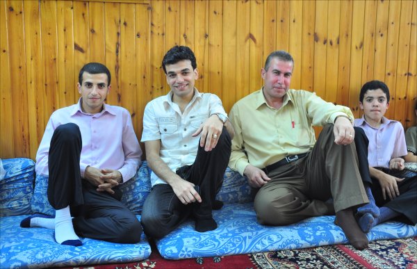 السادة: أ. محمد رمضان الأغا وشقيقه هاني، الحاج رمضان علي الأغا، العم وديع الأغا