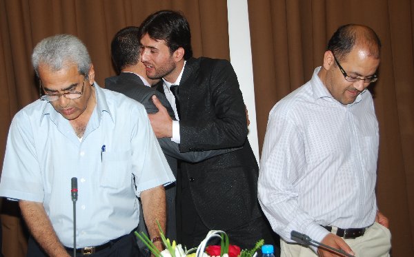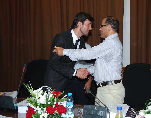 د.أحمد يتلقي التهنئة من الاستاذ الدكتور عبدالحيم المصلوحي