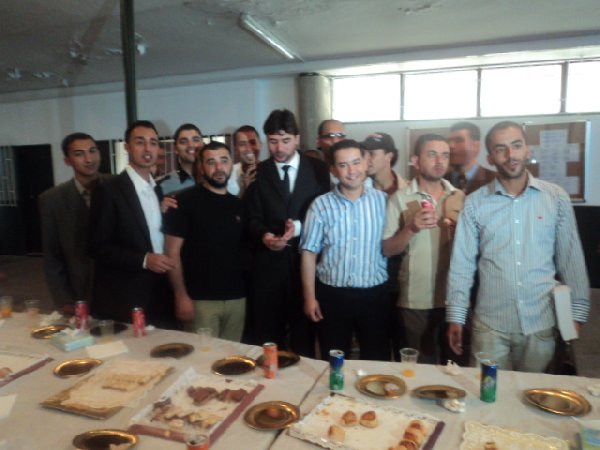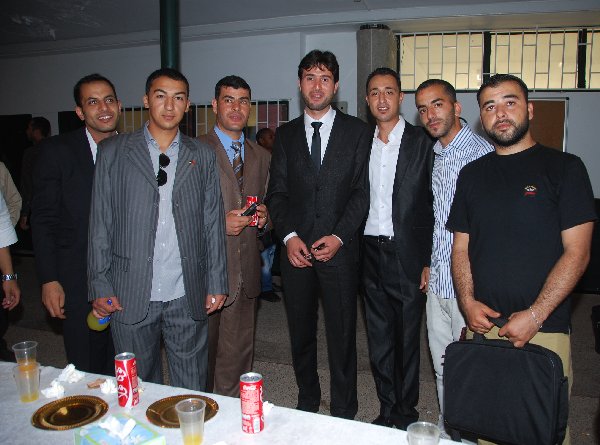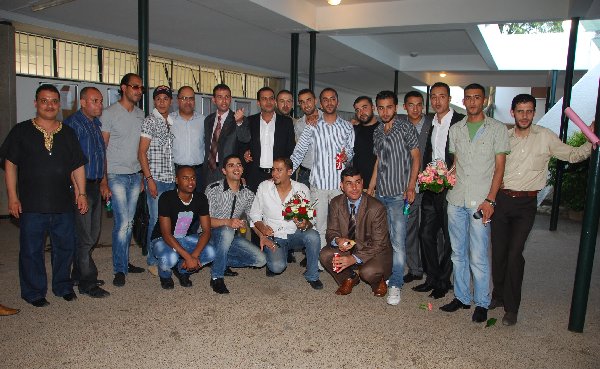 صورة جماعية لفرحة الطلاب الفلسطينيين بزميلهم الدكتور أحمد