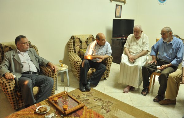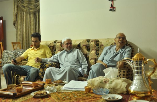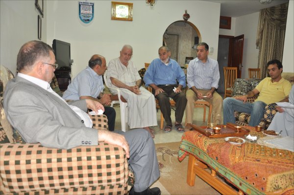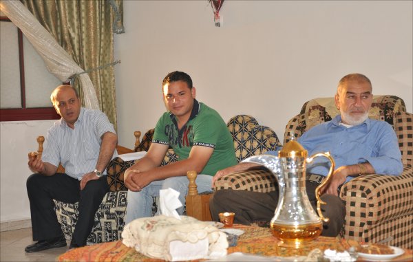 صور أثناء تقديم التهاني للحاج نظام سعيد الأغا بمناسبة حصول نجله أحمد على درجة الدكتوراه