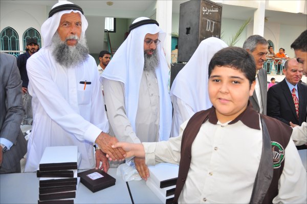 وقال الشيخ اللوح: "ما أجملها من لحظات، ونحن نلتقي في مناسبة طيبة، حفل تخريج الفوج الثامن، وتكريم أوائل الطلبة والمتفوقين من مدرسة الإمام محمد بن صالح العثيمين". وأضاف: "تعتني المدرسة بالجانب التعليمي، إذ تدرس المواد الإثرائية من القرآن الكريم والسنة النبوية الشريفة والفقه والعقيدة، إلى جانب المنهاج الوزاري الفلسطيني". مشيراً إلى أن الجمعية توليها اهتماماً، لأنها تعلم القرآن والسنة، وتربي أجيالاً على منهج النبوة، وتسعى إلى التميز والعطاء والإبداع. ولفت الشيخ الداعية إلى أن المدرسة حصلت على مراتب متقدمة في الإمتحان الموحد الذي عقدته مديرية التربية والتعليم، وفازت في العديد من المسابقات العلمية والثقافية والدعوية. وثمن الجهود المميزة لإدارة المدرسة وللهيئة التدريسية فيها، وللطلبة وذويهم، وتوجه بالشكر الجزيل للأخوة في جمعية إحياء التراث الإسلامي بدولة الكويت الشقيقة، على دعمهم المتواصل للشعب الفلسطيني، ولبنائهم وتشيدهم لهذه المدرسة. من جانبه أثنى مدير المدرسة يحيى الفرا على دور الهيئة التدريسية والإدارية والتربوية في المدرسة، وعلى جهود الطلبة وذويهم، مشيداً بتفوقهم الباهر الذي حققوه في امتحانات الفصل الدراسي الثاني، بحصولهم على أعلى الدرجات والمراتب العلمية المتقدمة في المدرسة. وقال: "حققت المدرسة تقدماً ملحوظاً في كافة الصُعد، على الرغم من العقبات والصعوبات التي واجهتها، وتسعى دوماً إلى التطور والرقي، وتعمل على تنفيذ مجموعة من البرامج التطويرية التعليمية والتربوية والإدارية، وكذلك في المرافق والمنشآت". وأضاف الفرا: "تطمح المدرسة إلى تنفيذ مجموعة من المشاريع منها: استيعاب الطلبة في كافة المراحل، وزيادة كادر العاملين، وزيادة استعمال الوسائل التقنية الحديثة في العملية التعليمية، وتوسيع المكتبة، وإنشاء صالة رياضية متعددة الأغراض، إضافة إلى تجهيز قاعات خاصة لتحفيظ القرآن الكريم، وتعليم السنة". بدوره عبر د.عاطف الأغا في كلمة أولياء الأمور، عن سعادته وشكره لجمعية دار الكتاب والسنة، ولمدرسة الإمام العثيمين، على دورهم الهام والفعال في المجتمع، وعلى الرعاية والاهتمام الخاص الذي يولوه لأبنائهم الطلبة خلال العام الدراسي. وأكد أن المدرسة أمينة في تعليم الأبناء والطلبة، وأنها تحرص بكل ثقة ومسؤولية وأمانة، على رعايتهم وتطويرهم دائماً نحو التميز والإبداع، لافتاً إلى أن هذا العرس الثقافي، ليس تكريماً للطلبة فقط، بل تكريماً للعقل الذي حرص على أن يزود الطلبة بالعلم والمعرفة، ويكسبهم تعاليم دينهم الإسلامي.