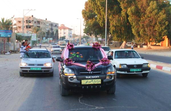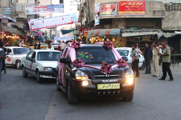 سيارة الزفة أثناء المرور من شارع صلاح الدين باتجاه دوار بني سهيلا