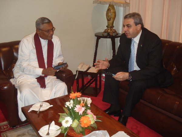 قام د. أنـور الأغـا سفير دولة فلسطين لدى سريلانكا و المالديف اليوم بوضع رئيس البرلمان في جمهورية سريلانكا السيد تشامال راجباكسه في صورة المستجدات المتعلقة بالقضية الفلسطينية، في ظل إنسداد عملية السلام، و تعثر المفاوضات مع الحكومة الإسرائيلية بسبب تعنتها تجاه سياسة البناء و التوسع الإستيطاني، و إستمرار الإعتداءات الإسرائيلية على أبناء شعبنا.