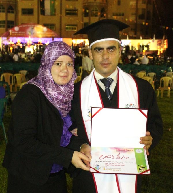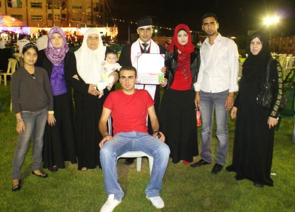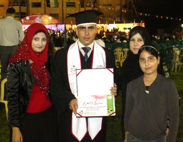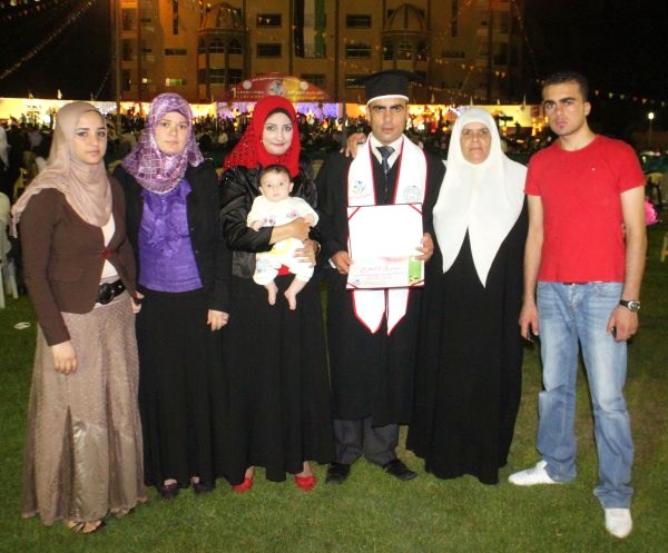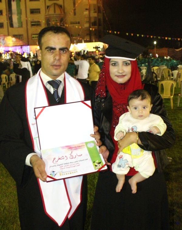الخريج وزوجته ونجله يونس أحمد يونس الأغا