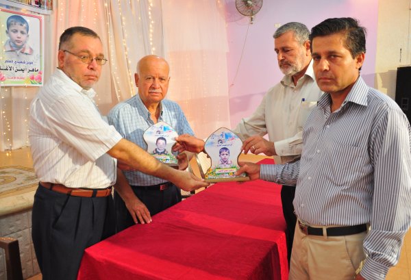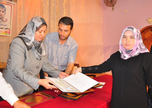 تكريم ذوي الشهيدين (ماهر أيمن الأغا ومحمد يوسف الأغا)، رحمها الله