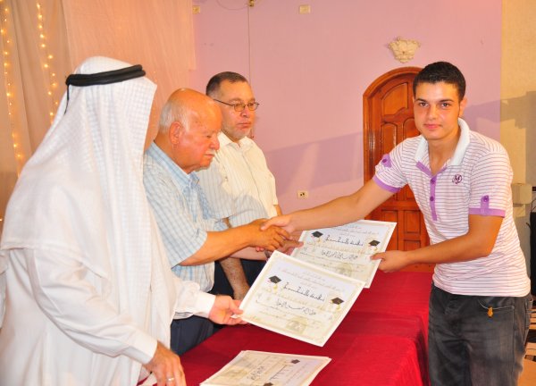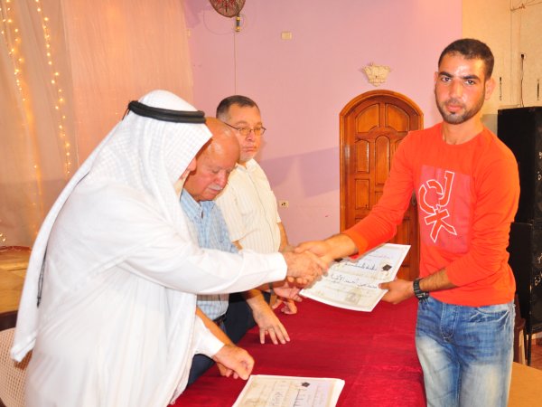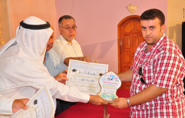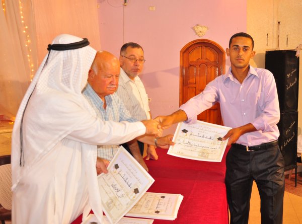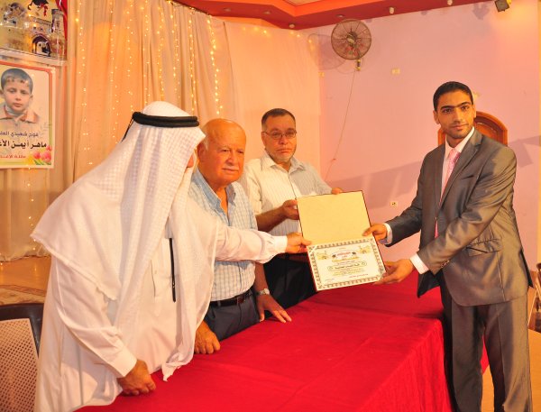 تكريم متفوقي الثانوية العامة(جائزة المرحوم عصام سعيد الأغا) وتكريم رفيقي دربه المرحوم بإذن الله رمضان محمد الأغا أبوفتحي، والأستاذ سليمان قديح أبوعصام.
