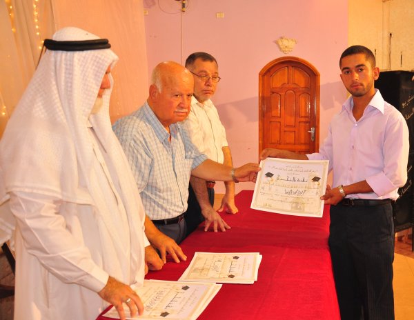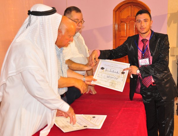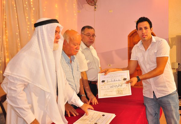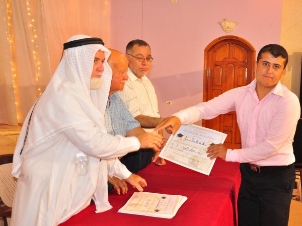 أ. عزام هاشم يوسف الأغا يستلم شهادته وشهادة عمر صدقي محمد الأغا