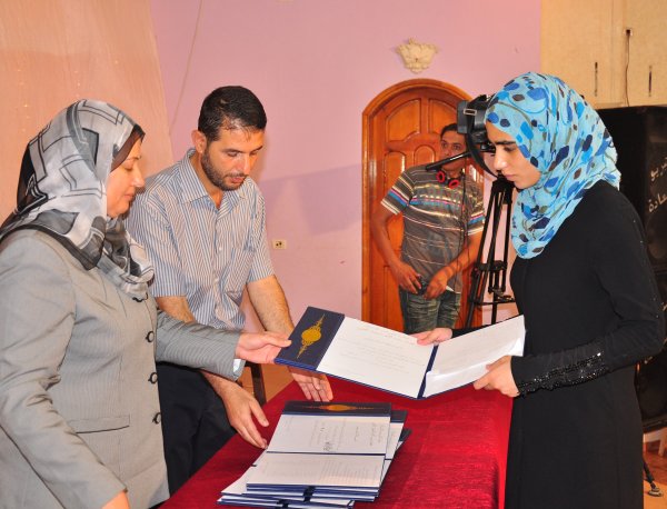 أ. فداء عمر عبدالرحيم الأغا يتسلمها عنها والدها