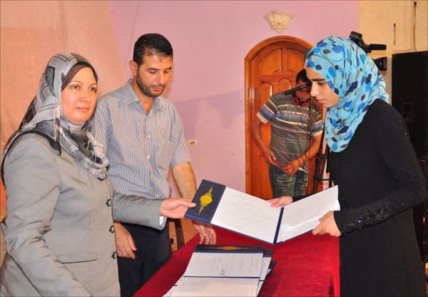 أ. ولاء نافذ الأغا تتسلمها عنها شقيقتها فداء