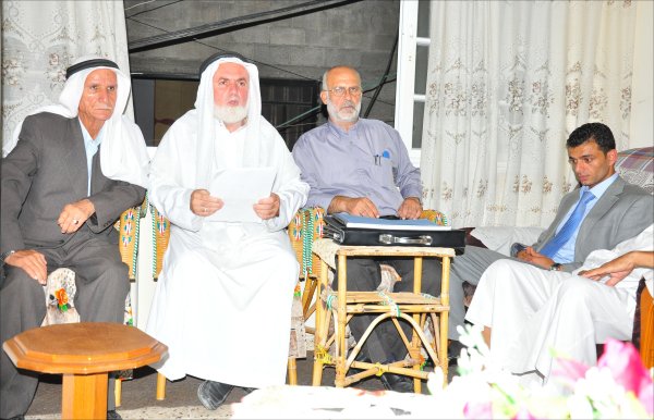 السادة: العريس، المأذون، الشيخ مازن الأغا، والد العروس