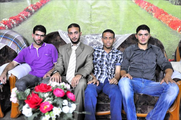 السادة: محمد(شقيق العروس)، العريس، والد العروس، أ. عاهد محمد الأغا(عديل العريس)،