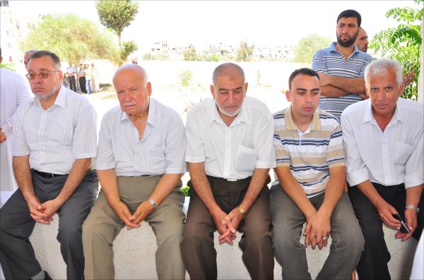 السادة: د. سامي إبراهيم الأغا(ابن خال الفقيد)، م. عيد مصطفى الأغا، إبراهيم ماجد الأغا،