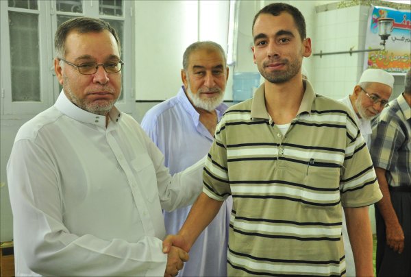 أ. د. عبدالمعطي رمضان الأغا ونجله قصي، د. صلاح رمضان الأغا