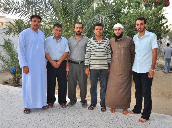 السادة: أ. فرج العقاد، د. عبدالفتاح رمضان الأغا ونجله براء، أ. حمدان عوني الأغا