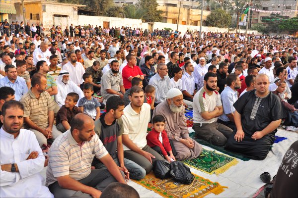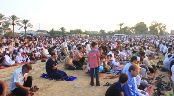 صورة من الأعلى لجموع المشاركين في صلاة العيد