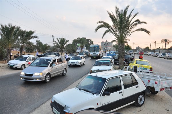 سيارات المواطنين الذين يؤدون صلاة العيد على طريق صلاح الدين