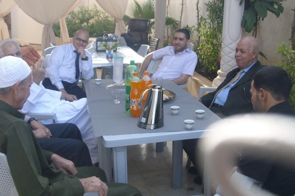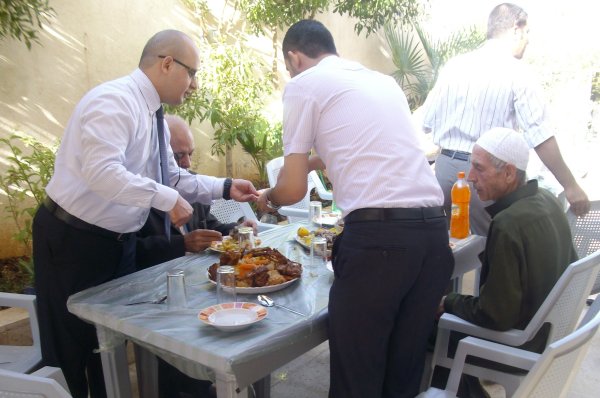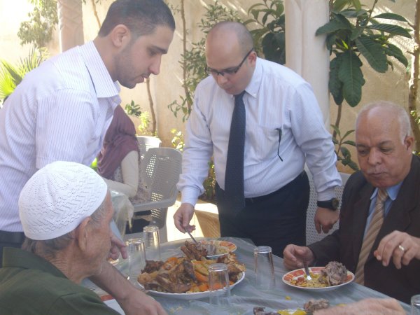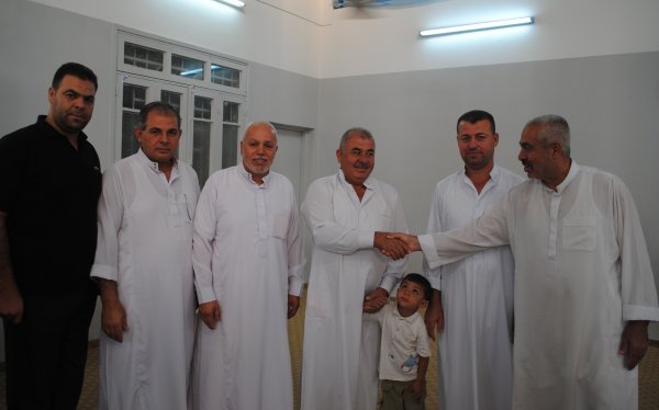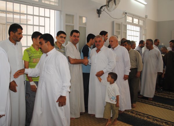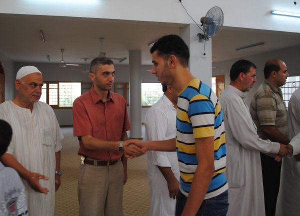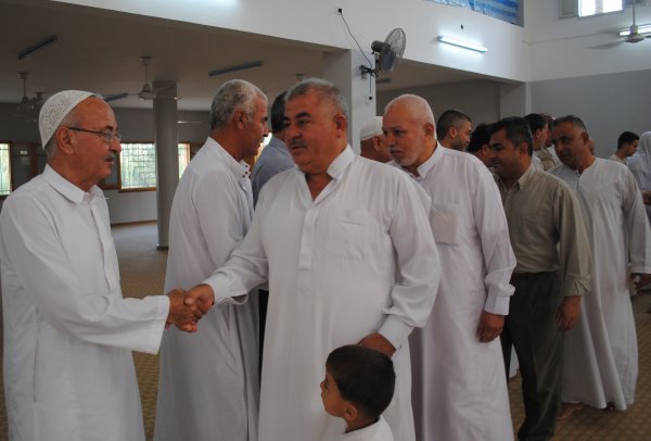 أثناء المصافحة إحتفالاً بالعيد ، ويظهر في الصورة أ. محمد حمتو الأغا