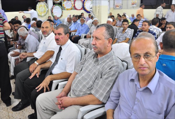 السادة: الوزير أ. د. محمد رمضان الأغا، د. سامي(أخ الفقيد)، النائب جمال الخضري،