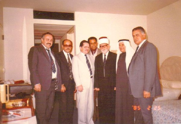 الزمان: 25/2/1985م المكان: أحد أجنحة فندق شيراتون الدوحة الشخوص: الأستاذ المرحوم فتحي البلعاوي (أبوالوطنية) وإلى يمينه الداعية الشيخ مصطفى الصيرفي، وإلى يمينه مفتي القدس المرحوم الشيخ سعد الدين العلمي، وإلى يمينه الأستاذ القدير المرحوم هاني طايع (أبوربيع) موجه اللغة العربية، وإلى جانبه نبيل خالد الأغا سكرتير تحرير مجلة الدوحة، ويبدو إلى أقصى اليسار صحفي فلسطيني، والمناسبة: السلام والتحية والترحيب بالشيخ العلمي رحمه الله بمناسبة زيارته لقطر.