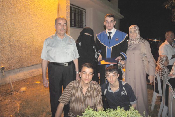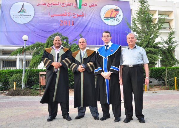 السادة: م. يوسف حمدان الأغا(والد الخريج)، الخريج، د. أيمن صالح الأغا، د. محمد العمور